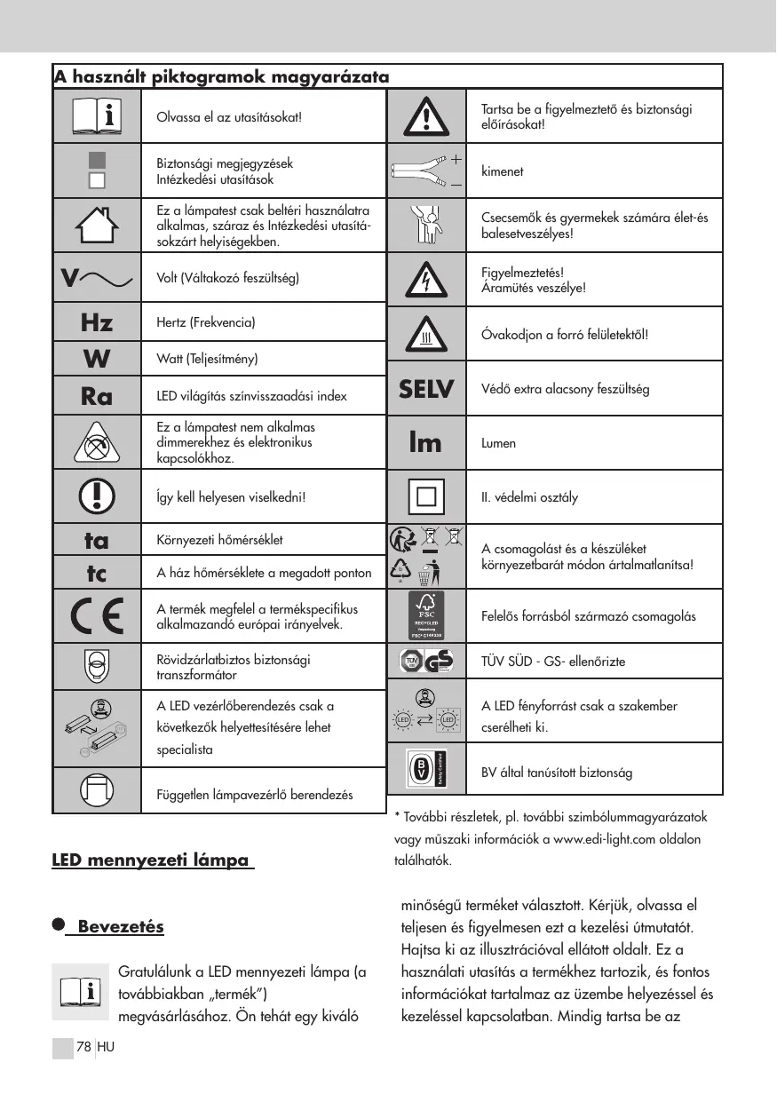 230V Responsable de la mise sur le marché: EDI Light GmbH Heiligkreuz 22, 6136 Pill, AUTRICHE www.edi-light.com