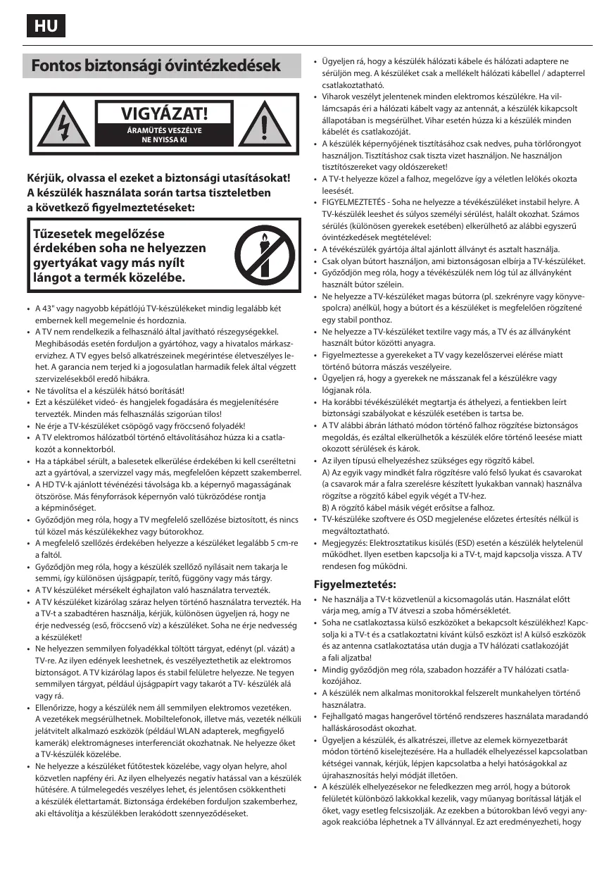 + Cette TV ne contient aucune pièce qui pourrait être réparée par l'utilisateur. En cas de défaut, contacter le fabricant ou l'agent autorisé qui assure le service après-vente. Le contact avec certaines parties situ- es à l'intérieur de la TV pourrait mettre votre vie en danger. La garantie ne couvre pas les défauts provoqués par des réparations effectuées par des tiers non autorisés.