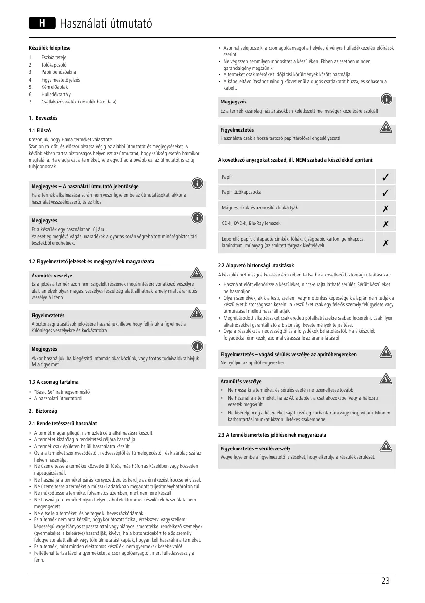 Retrouvez gratuitement la notice de l'appareil Destructeur de documents HAMA au format PDF.