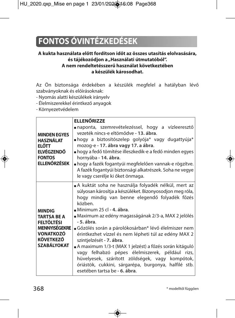 « Maximum 1/3 (repère MAX 1) pour les aliments pâteux qui se dilatent et/ou qui moussent pendant la cuisson, comme le riz, les légumineuses, les légumes déshydratés, les compotes, le potiron, les courgettes, les carottes, les pommes de terre, les filets de poisson... fig 6.