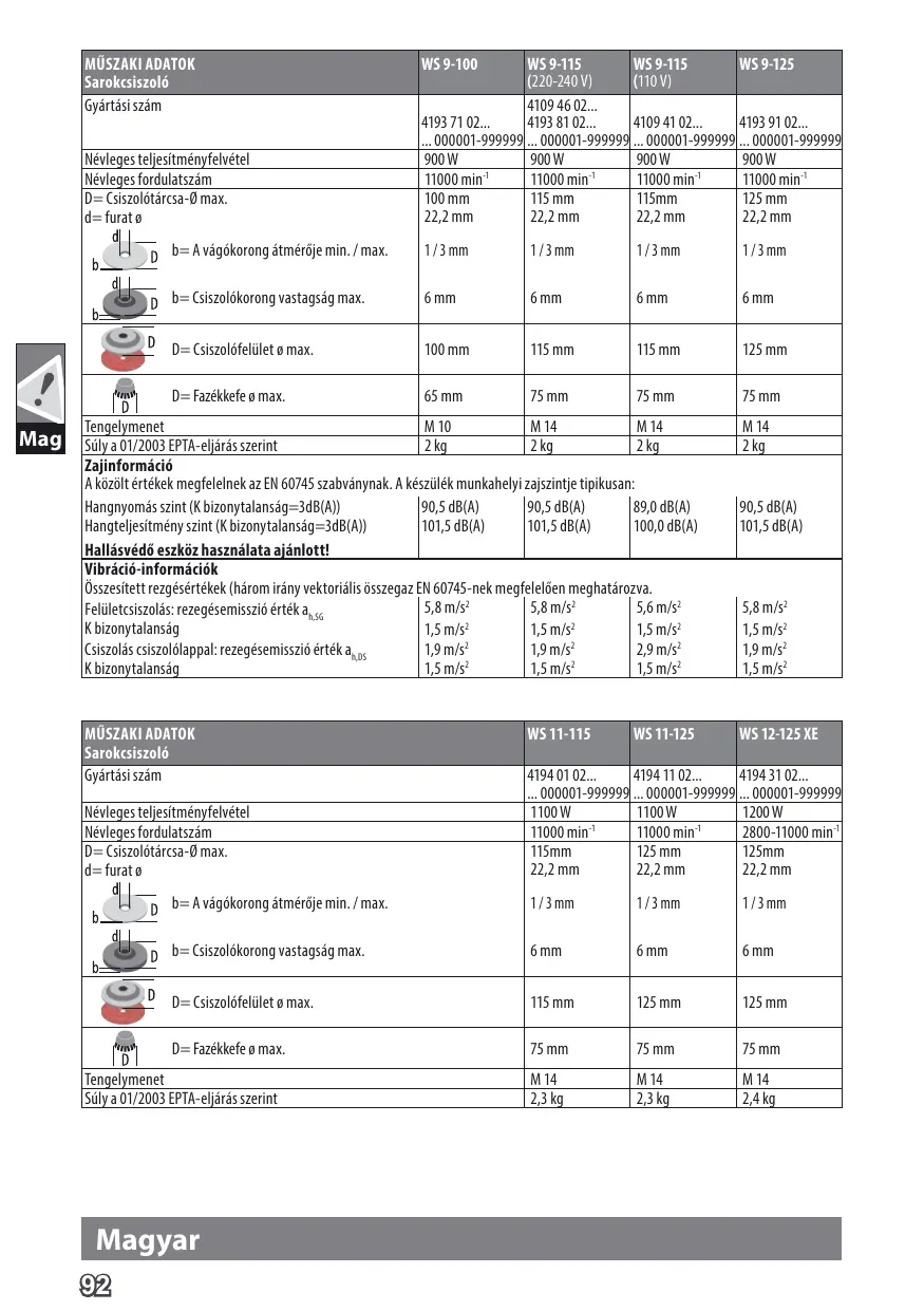 HASZNÁLATI ÚTMUTATÓ WS 9-100, WS 9-115, WS 9-125, WS 11-115, WS 11-125, WS 12-125 XE AEG