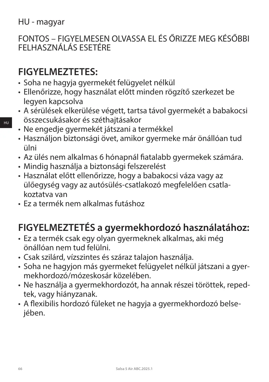 HASZNÁLATI ÚTMUTATÓ SALSA 5 AIR SET ABC DESIGN