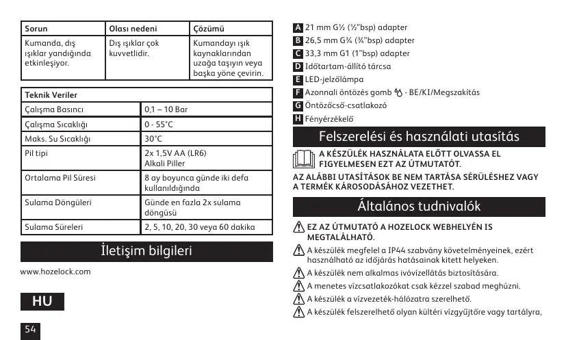 HASZNÁLATI ÚTMUTATÓ SENSOR, 1 VOIES - 2212 HOZELOCK
