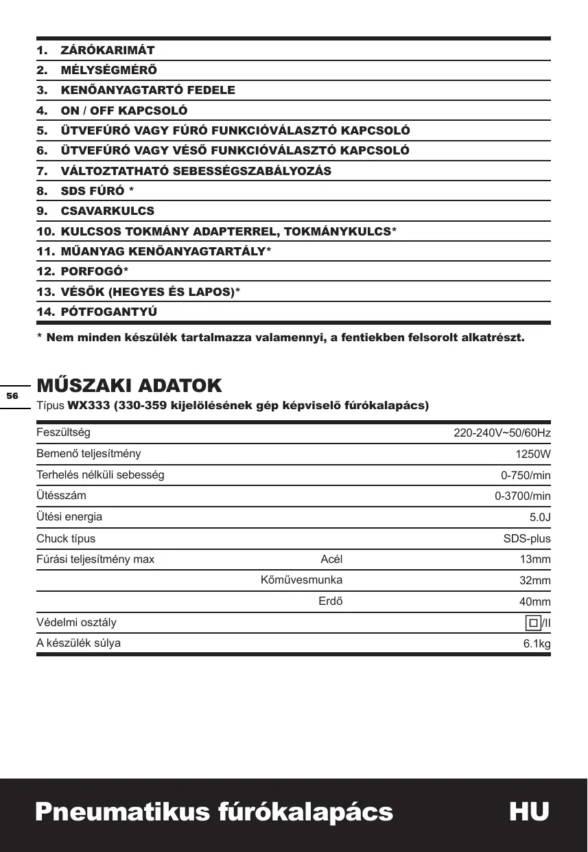 WT344 - WX333 - Marteau perforateur WORX - Notice d'utilisation et mode d'emploi gratuit