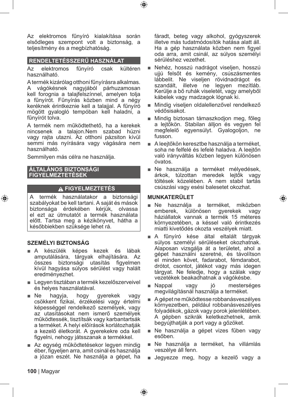 = La tondeuse à gazon est capable d'amputer les mains et les pieds, ainsi que de projeter des objets. Le non-respect de toutes les règles de sécurité est susceptible d'entraîner des blessures graves voire mortelles.
