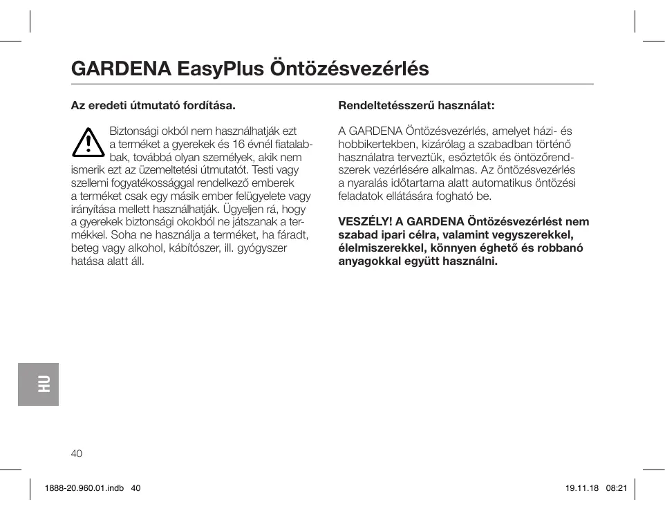 HASZNÁLATI ÚTMUTATÓ EasyPlus 1888 GARDENA