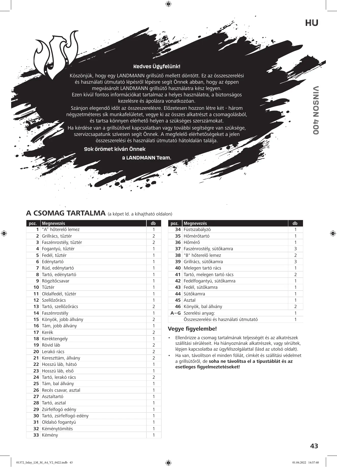 HASZNÁLATI ÚTMUTATÓ VINSON 400 LANDMANN