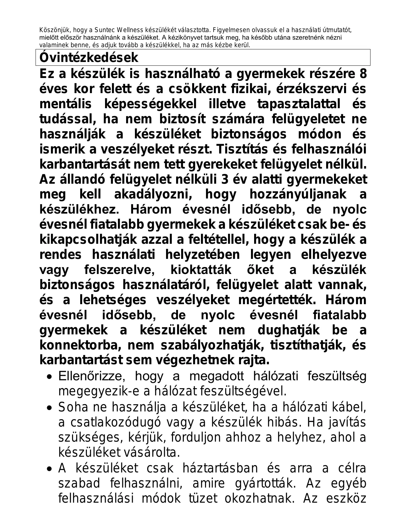 En caso de que necesite asistencia técnica, péngase en contacto con su distribuidor especializado. Denominacién del producto: Nümero de serie: Nombre del comprador: Fecha de compra: Sello y firma del distribuidor especializado: Fabricante: Nous nous engageons de remettre en état votre appareil gratuitement pendant la période de garantie de 24 mois ou alors de mettre à disposition les pièces détachées gratuitement à votre commerçant spécialisé, si votre appareil devait défaillir en raison d'une erreur de fabrication ou d’un vice de matériel côté production. Toute revendication à notre encontre allant au-delà est exclue. Nous n'assumons pas de responsabilité pour des endommagements dans des cas de force majeure, en cas de manipulation incorrecte, en cas de non-respect de la notice, en cas d'usure due au fonctionnement ou pour des dommages survenus sur le chemin du transport. Ce certificat est uniquement valable avec la facture correspondante. En cas d'intervention de service, veuillez ramener le produit acheté à votre commerçant spécialisé. Désignation de l’article : Numéro de série : Nom de l'acheteur : Date de l’achat : Cachet et signature du commerçant spécialisé : Fabricant : Suntec Wellness GmbH HolzstraRe 2