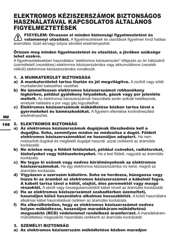 d) Ne pas maltraiter le cordon. Ne jamais utiliser le cordon pour porter, tirer ou débrancher l'outil. Maintenir le cordon à l'écart de la chaleur, du lubrifiant, des arêtes ou des parties en mouvement, Des cordons endommagés ou emmêlés augmentent le risque de choc électrique.