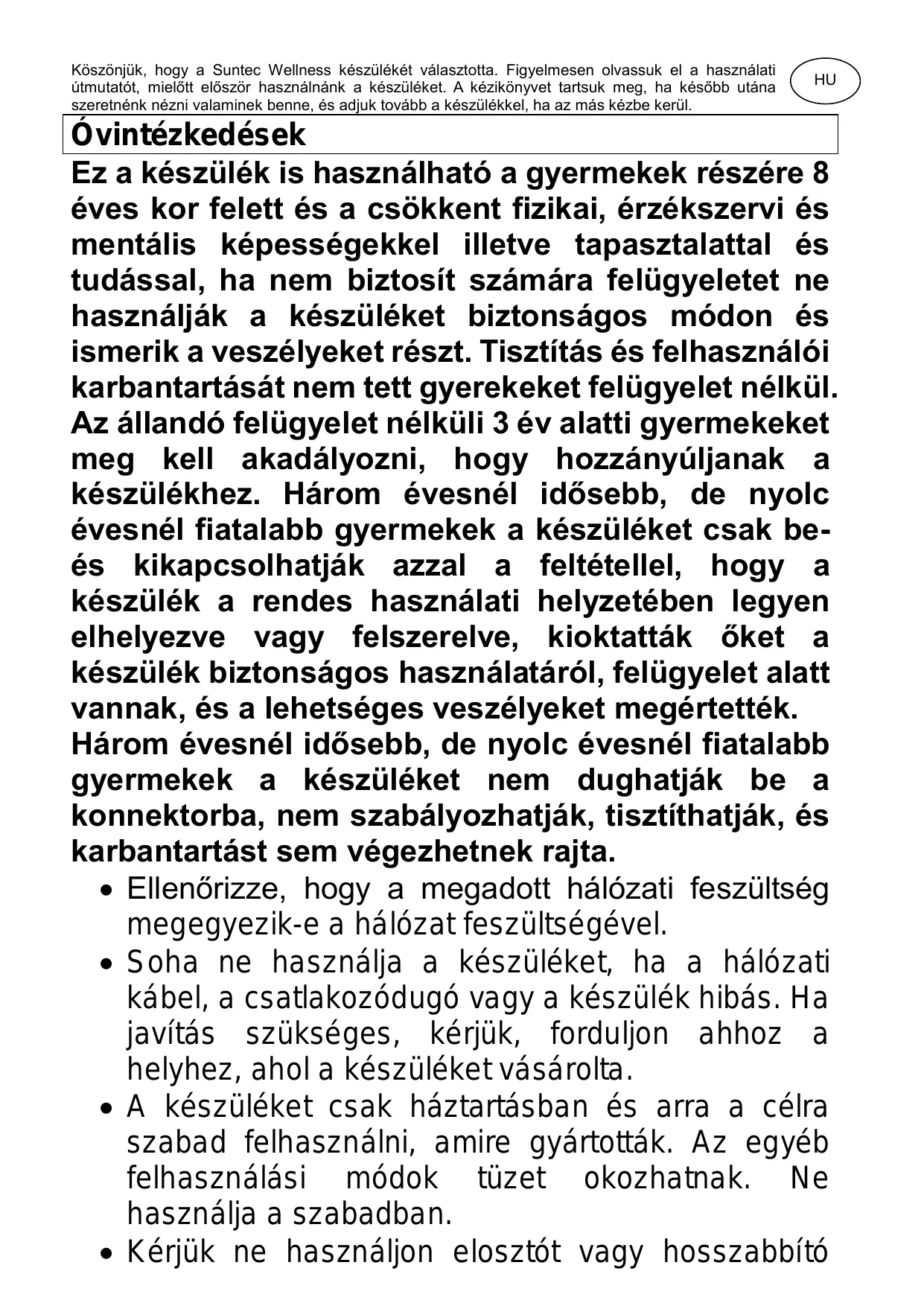 En caso de que necesite asistencia técnica, péngase en contacto con su distribuidor especializado. Denominacién del producto: Nümero de serie: Nombre del comprador: Fecha de compra: Sello y firma del distribuidor especializado: Fabricante: Nous nous engageons de remettre en état votre appareil gratuitement pendant la période de garantie de 24 mois ou alors de mettre à disposition les pièces détachées gratuitement à votre commerçant spécialisé, si votre appareil devait défaillir en raison d'une erreur de fabrication ou d'un vice de matériel côté production. Toute revendication à notre encontre allant au-delà est exclue. Nous n’assumons pas de responsabilité pour des endommagements dans des cas de force majeure, en cas de manipulation incorrecte, en cas de non-respect de la notice, en cas d'usure due au fonctionnement ou pour des dommages survenus sur le chemin du transport. Ce certificat est uniquement valable avec la facture correspondante. En cas d'intervention de service, veuillez ramener le produit acheté à votre commerçant spécialisé. Désignation de l’article : Numéro de série : Nom de l'acheteur : Date de l’achat : Cachet et signature du commerçant spécialisé : Fabricant : Suntec Wellness GmbH HolzstraRe 2