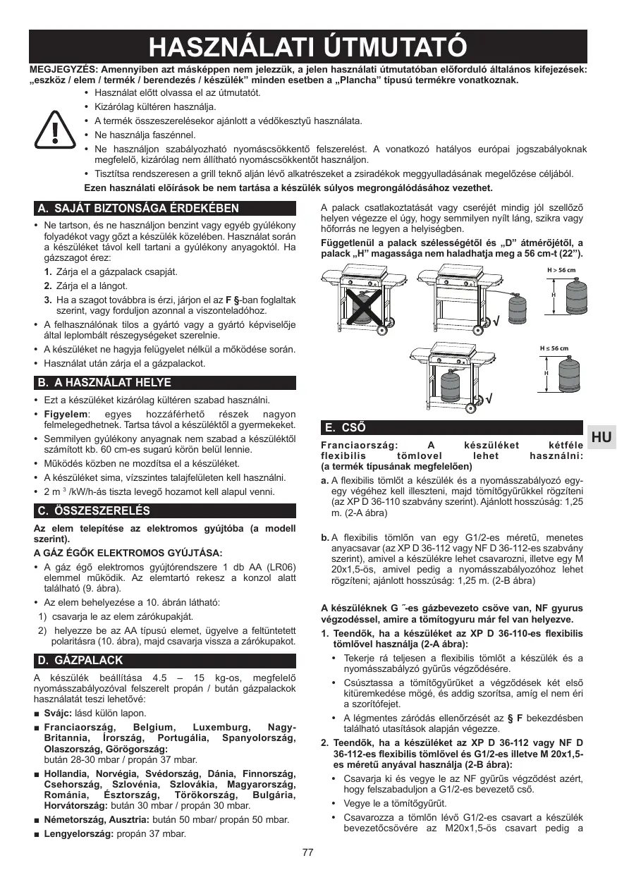 Németorszäg, megfeleléen): A készüléket propän / butn gézas hasznélatra alkalmazott minéségü hajlékony csôvel kell hasznéini