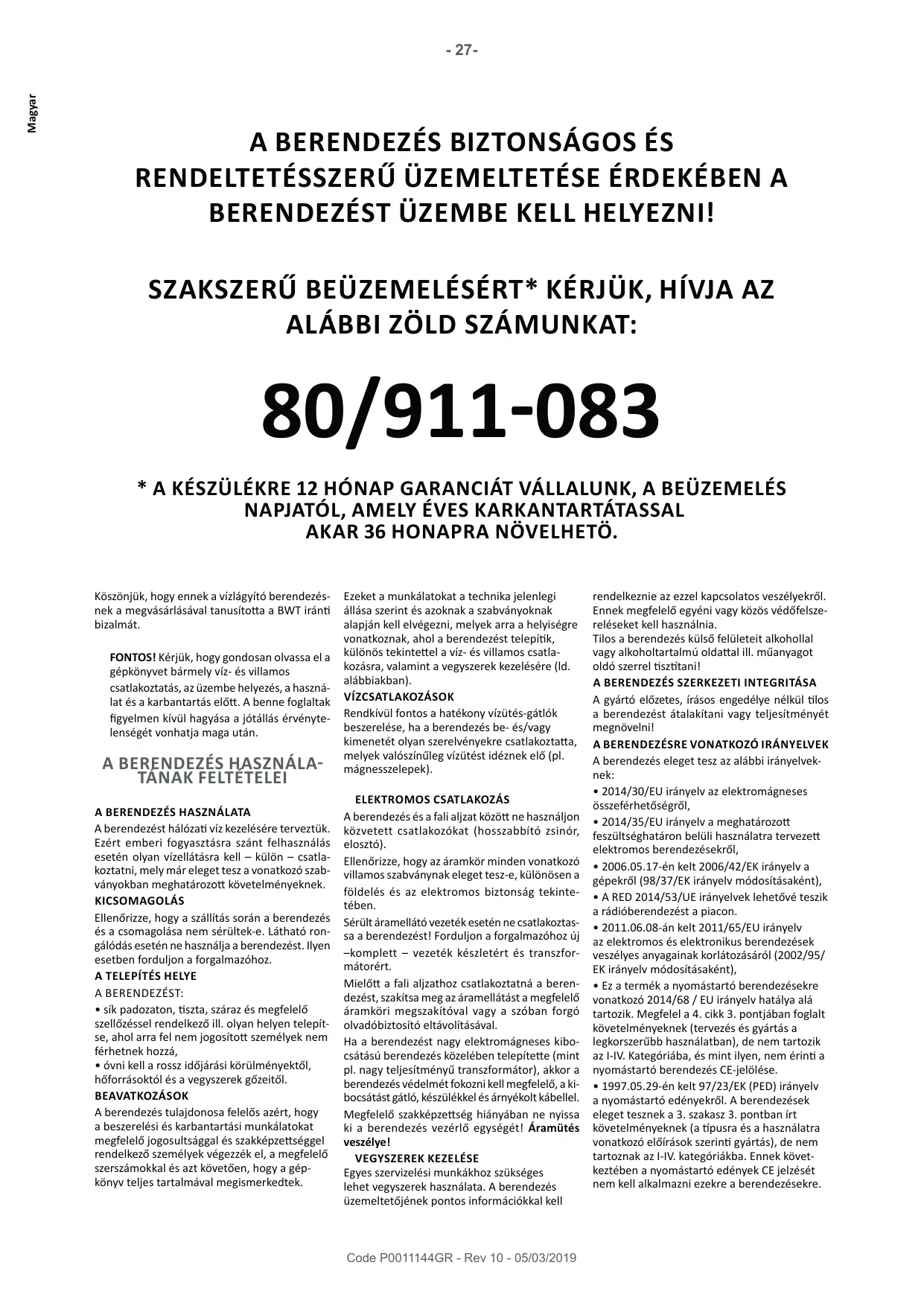 Code P0011144GR - Rev 10 - 05/03/2019