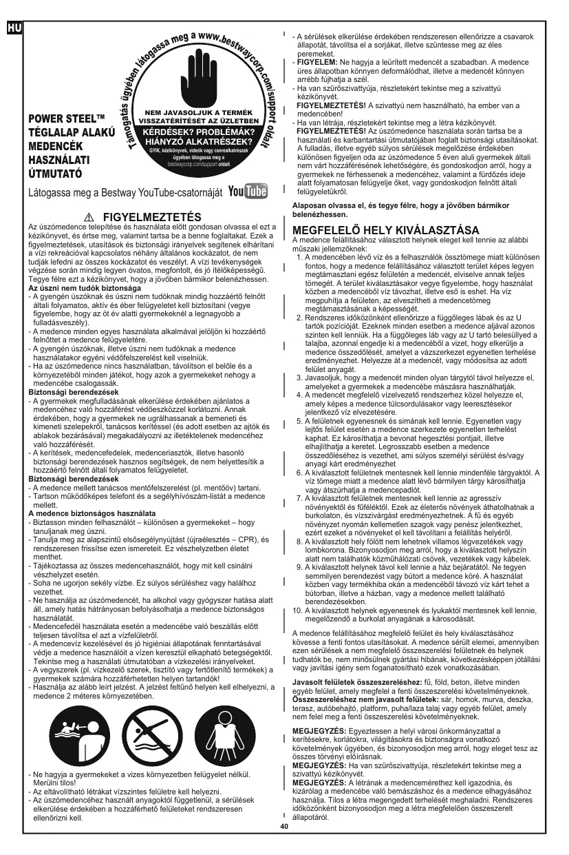 HASZNÁLATI ÚTMUTATÓ POWERSTEEL BESTWAY