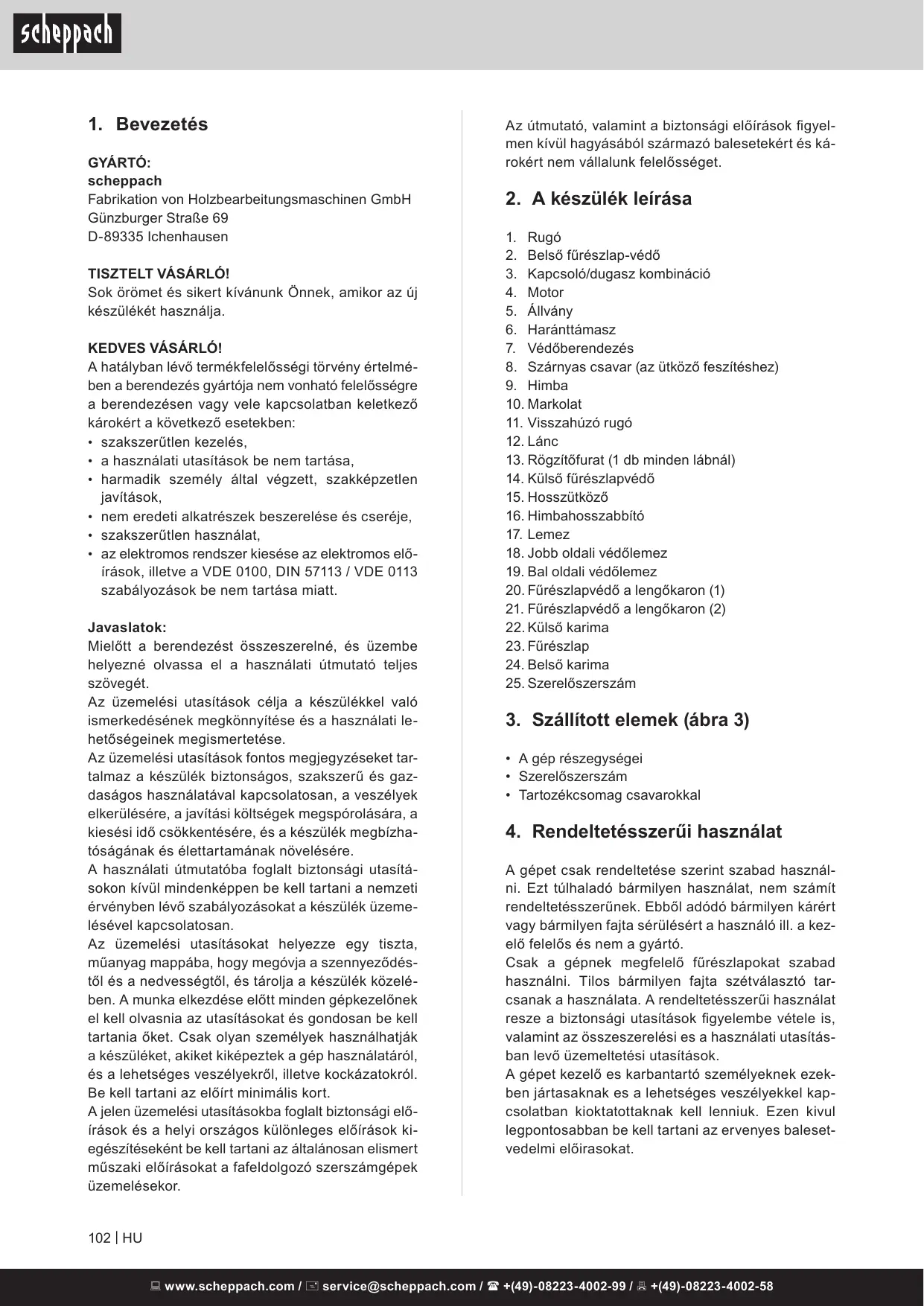 HASZNÁLATI ÚTMUTATÓ HS410 SCHEPPACH