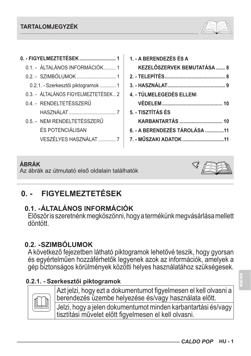 HASZNÁLATI ÚTMUTATÓ CALDO POP OLIMPIA SPLENDID