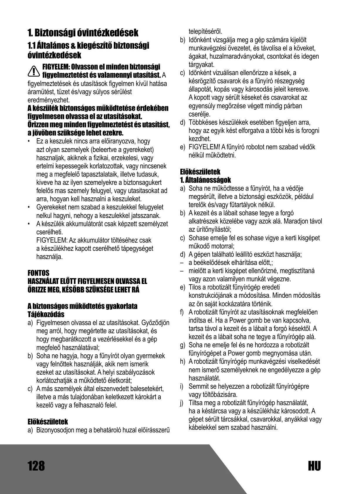 h) Ne laissez en aucun cas la tondeuse à une personne non familiarisée avec l'appareil et son mode d'utilisation.