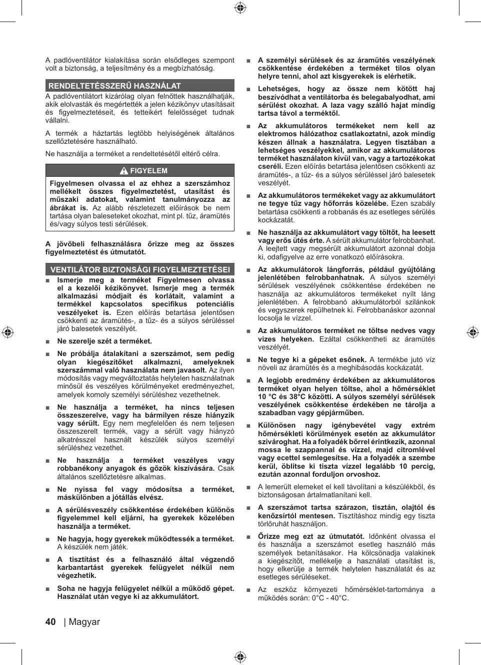 À padléventilätort kizrélag olyan felnéttek hasznälhatjäk, akik elolvasték és megértették a jelen kéziknyv utasitésait és figyelmeztetéseit, és tettelkért felelésséget tudnak vällalni