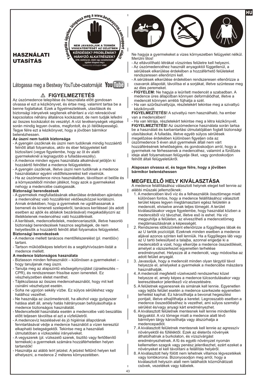 HASZNÁLATI ÚTMUTATÓ SWIMVISTA BESTWAY