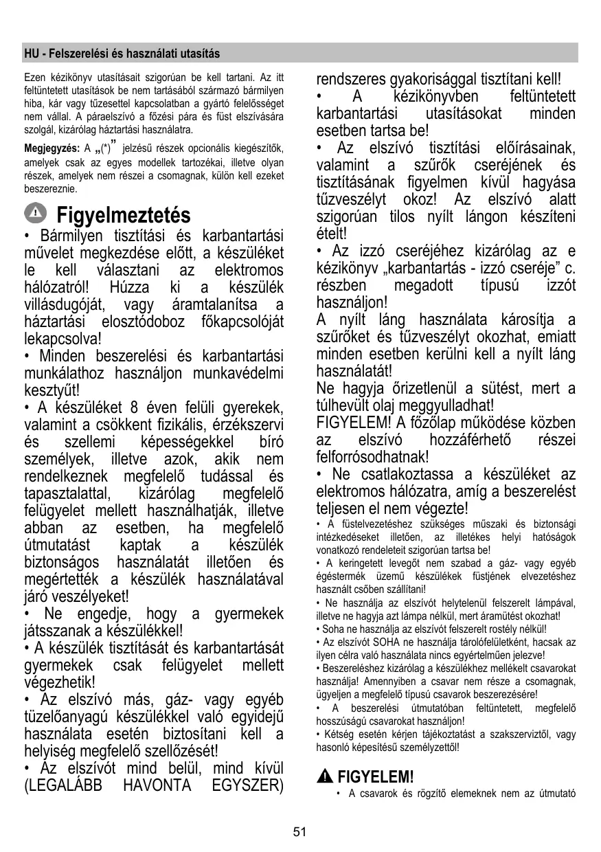 MISSY IX/A/90 - Páraelszívó ELICA - Notice d'utilisation et mode d'emploi gratuit