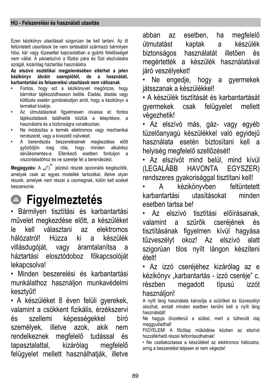 HASZNÁLATI ÚTMUTATÓ PRF0023893B ELICA