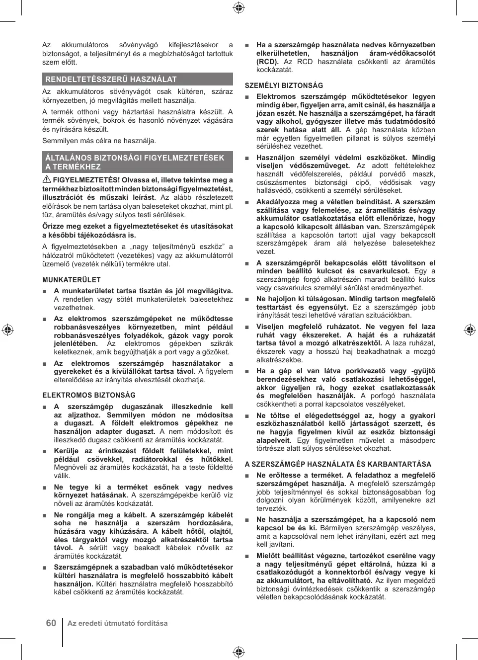 = Utiliser l'outil, les accessoires et les lames etc., conformément à ces instructions, en tenant compte des conditions de travail et du travail à réaliser.