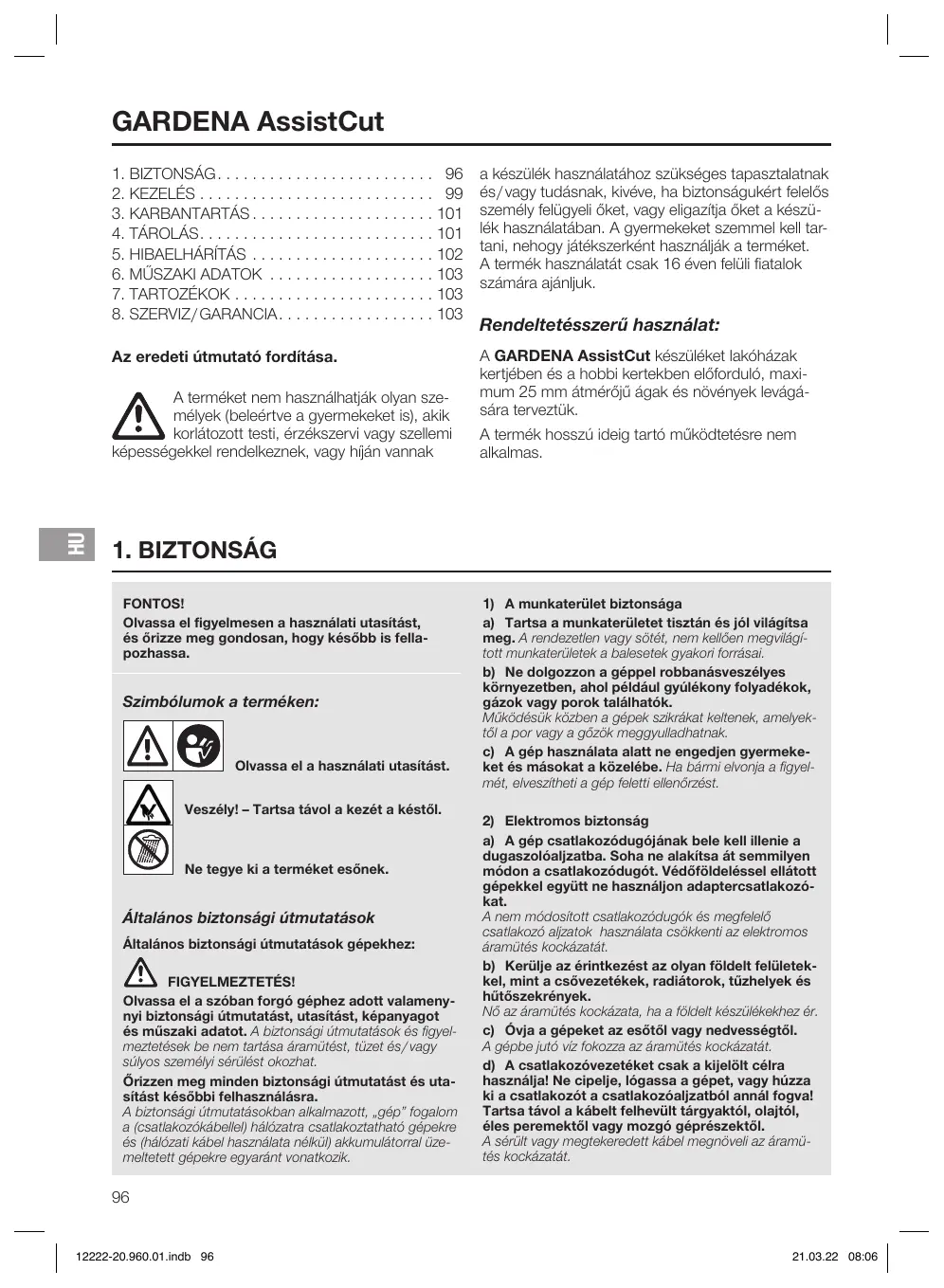 HASZNÁLATI ÚTMUTATÓ 12222 GARDENA