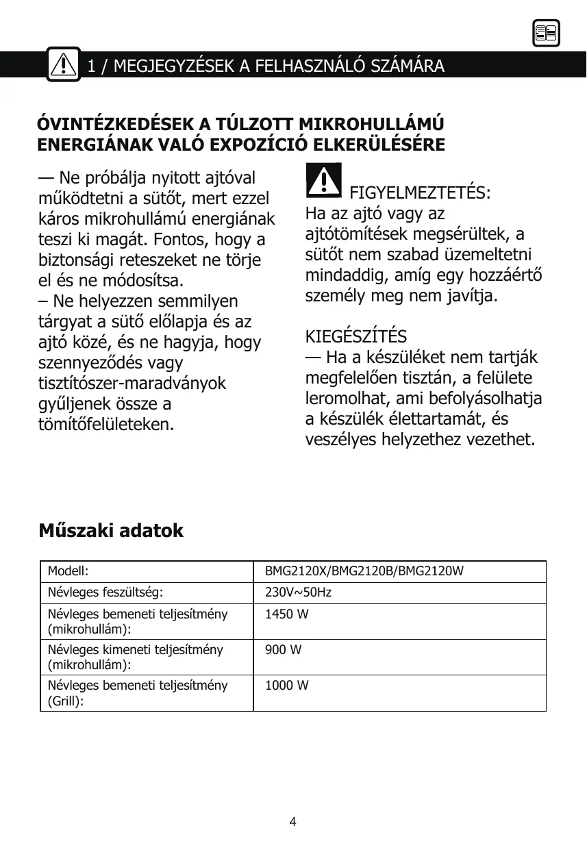 Téléchargez la notice de votre Mikrohullámú sütők au format PDF gratuitement ! Retrouvez votre notice BMG2120X - BRANDT et reprennez votre appareil électronique en main. Sur cette page sont publiés tous les documents nécessaires à l'utilisation de votre appareil BMG2120X de la marque BRANDT.