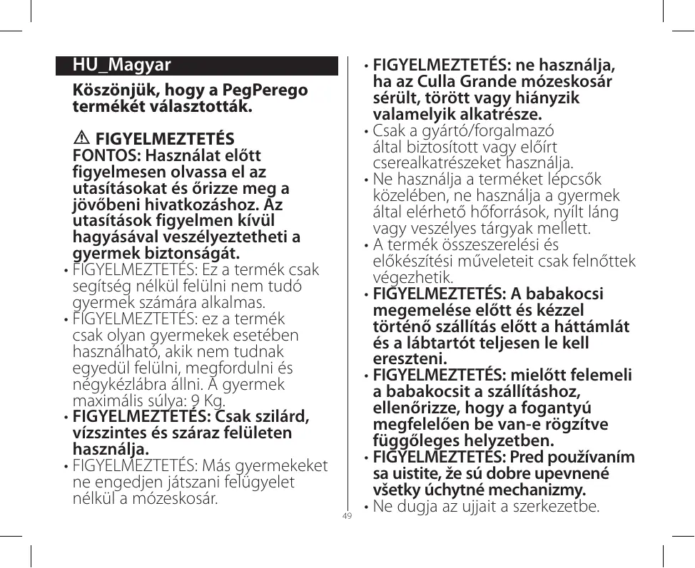 Téléchargez la notice de votre Babakocsik és kiegészítők au format PDF gratuitement ! Retrouvez votre notice Culla Grande - PEG PEREGO et reprennez votre appareil électronique en main. Sur cette page sont publiés tous les documents nécessaires à l'utilisation de votre appareil Culla Grande de la marque PEG PEREGO.