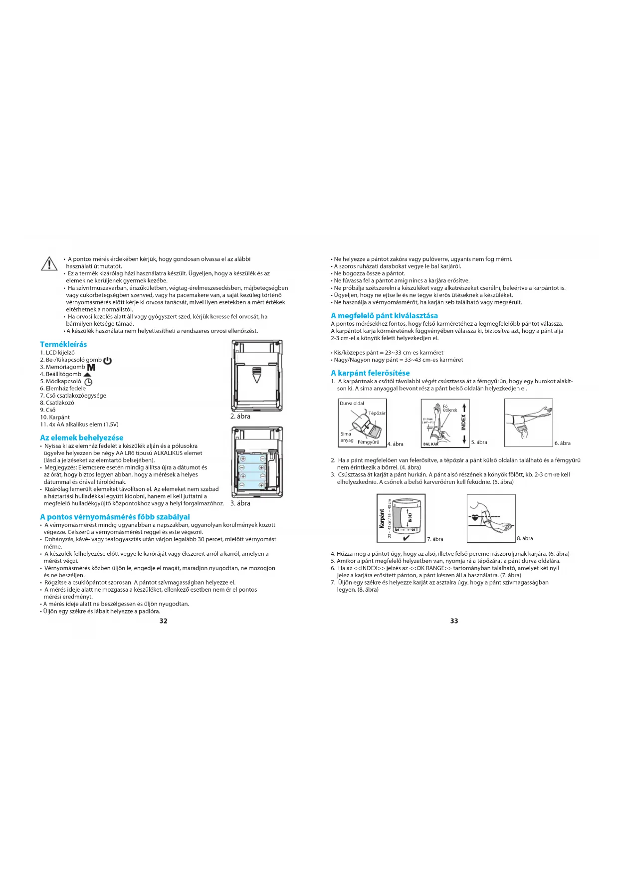 - Megjegyzés: Elemcsere esetén mindig állítsa újra a dátumot és az órát, hogy biztos legyen abban, hogy a mérések a helyes dátummal és órával tárolódnak.