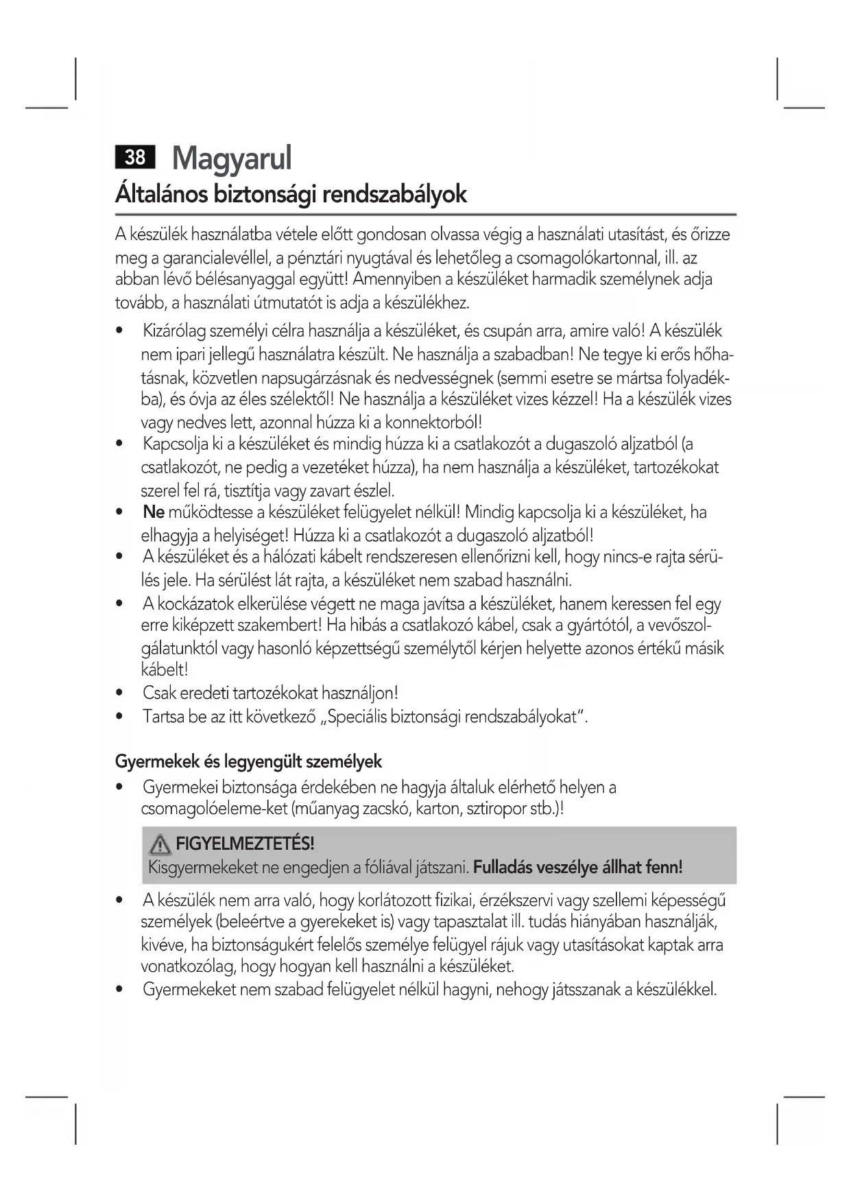 38 Magyarul ÁltalánosBiztonsági rendszabályok