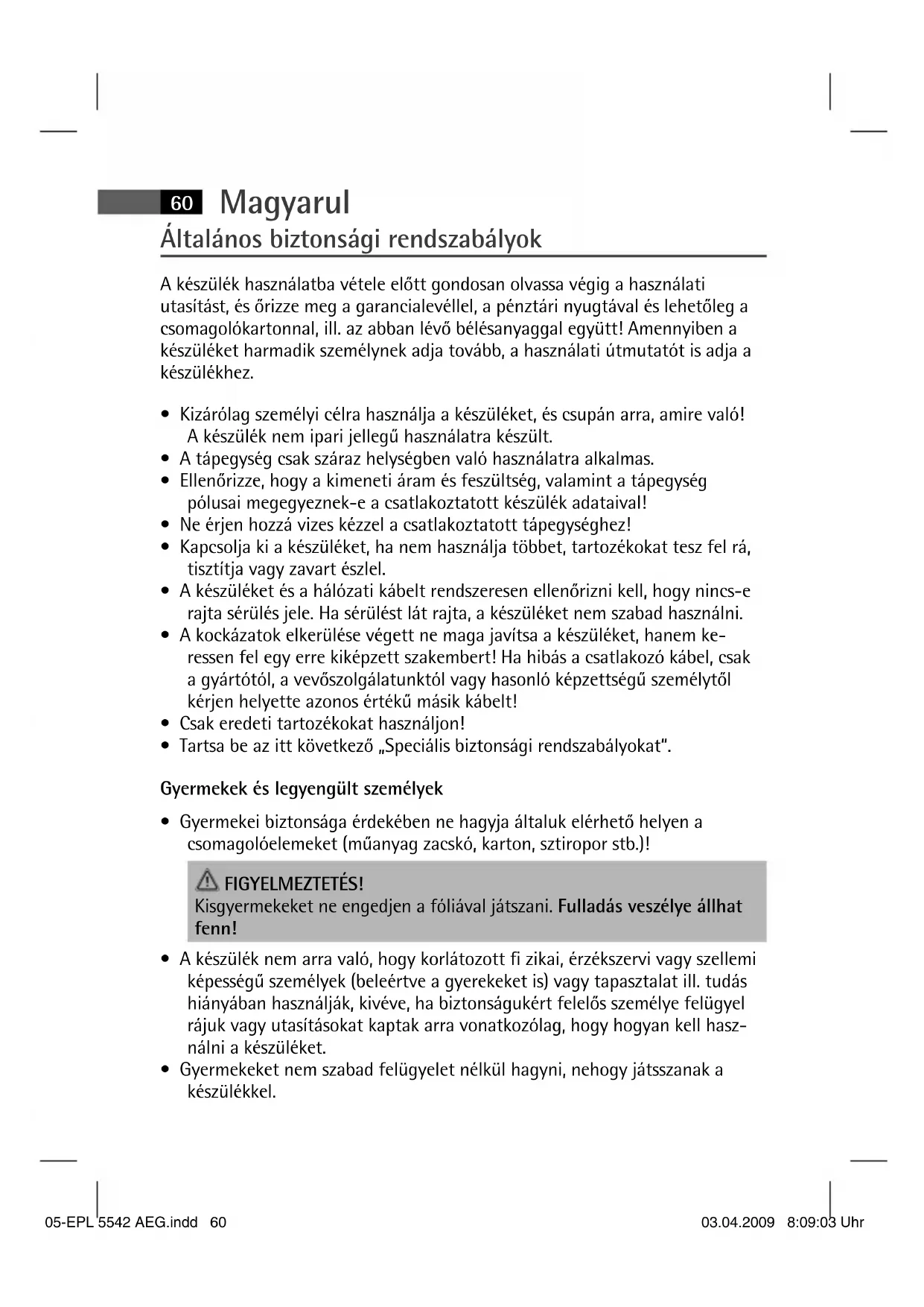 05-EPL 5542 AEG.indd 6005-EPL 5542 AEG.indd 60 03.04.2009 8:09:03 Uhr03.04.2009 8:09:03 UhrMagyarul