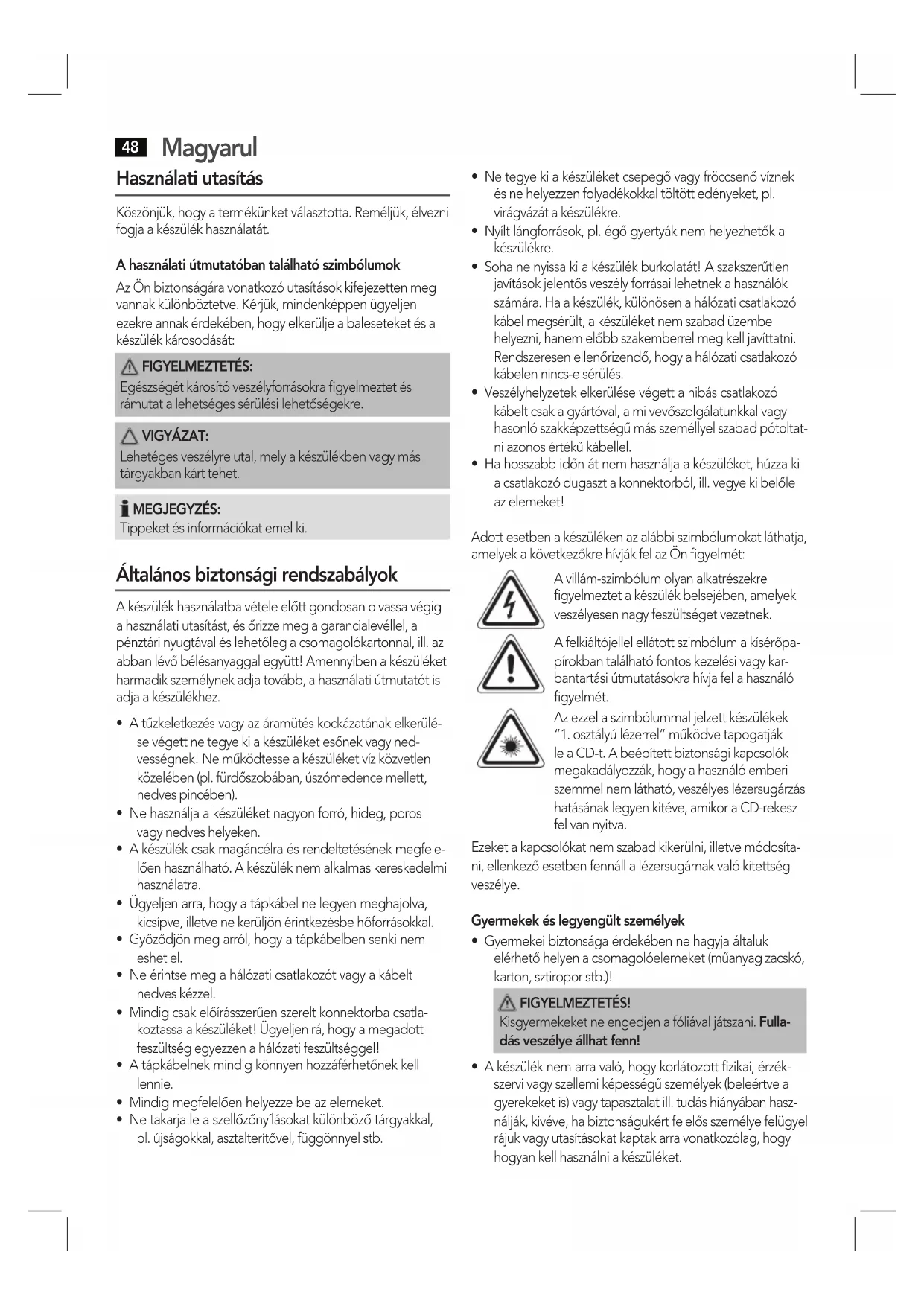• Soha ne nyissa ki a készülék burkolatát! A szakszerűtlen