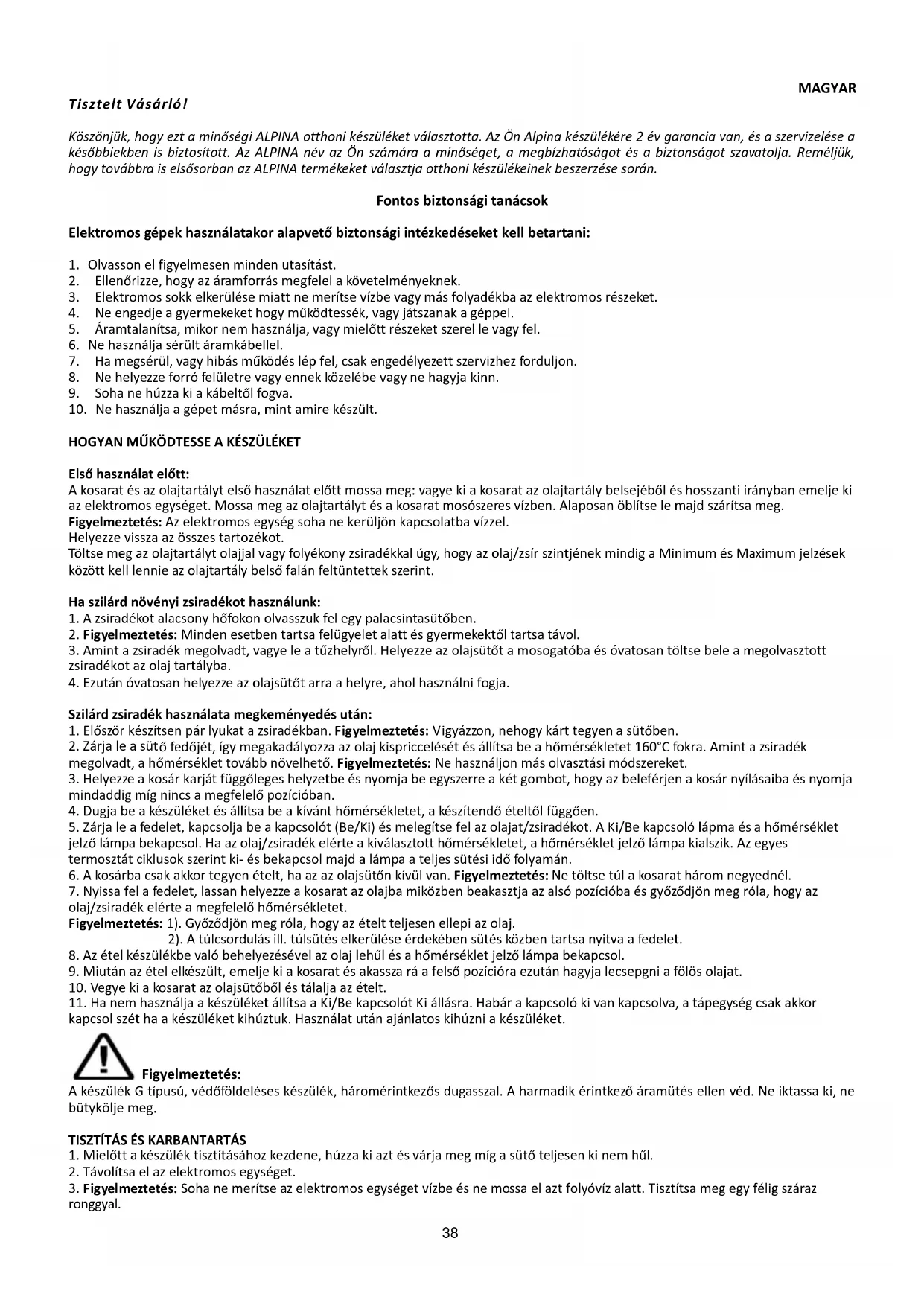 Köszönjuk, hogy ezt a minósegi ALPINA otthoni készüléket választotta. Az On ALpina készülékere 2 ev garancia van, és szervizelése a késöbbiekben isbiztositott. Az ALPINA nev az On száma r a minóseget, a megbizhatosagot es a biztonsagot szavatolja. Remeljuk, hogy továbbra is elósorban az ALPINA termekeket vázasztj athonni készülékeinek beszerzese soran.