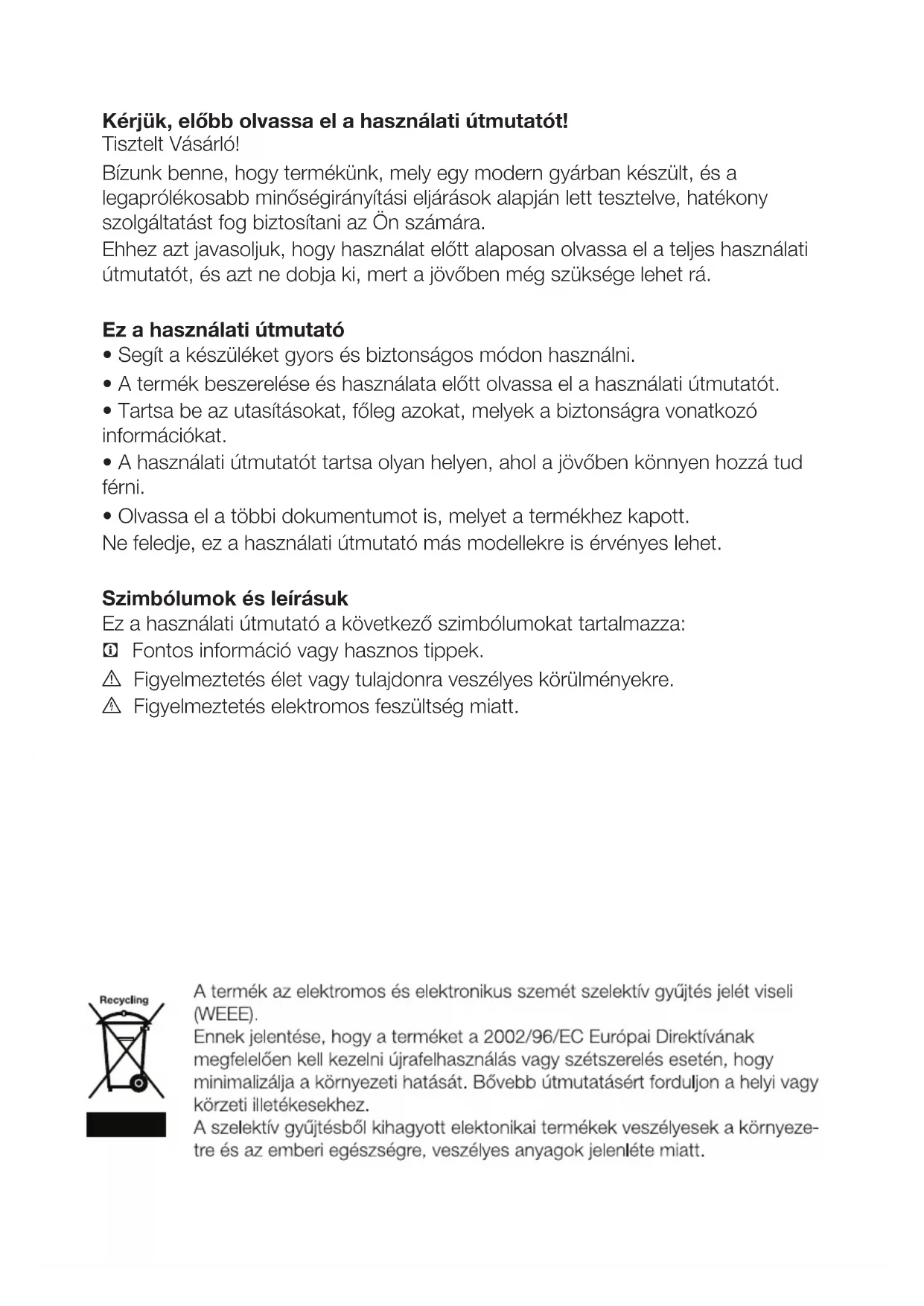 útmutatót, és azt ne dobja ki, mert a jövőben még szüksége lehet rá.