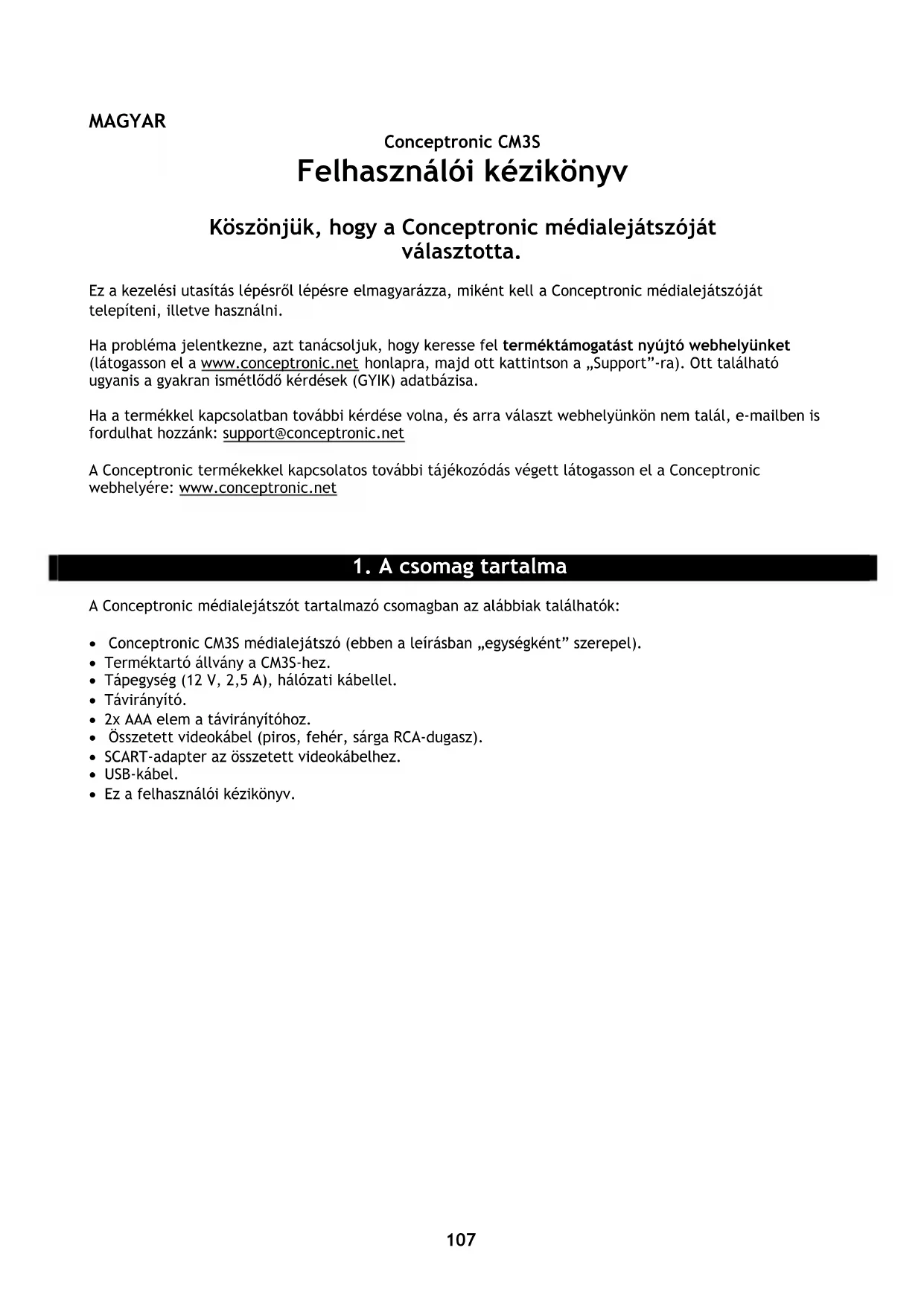 - Conceptronic CM3S médialejátszó (ebben a leírásban „egységként” szerepel).