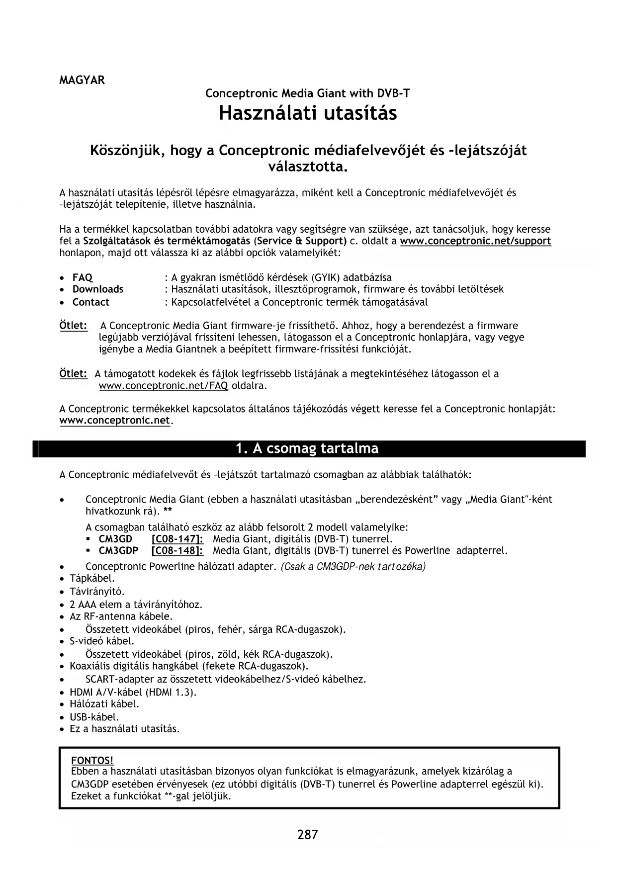 Találja meg az eszköz kézikönyvét ingyenesen Media Giant met DVBT CONCEPTRONIC PDF formátumban.