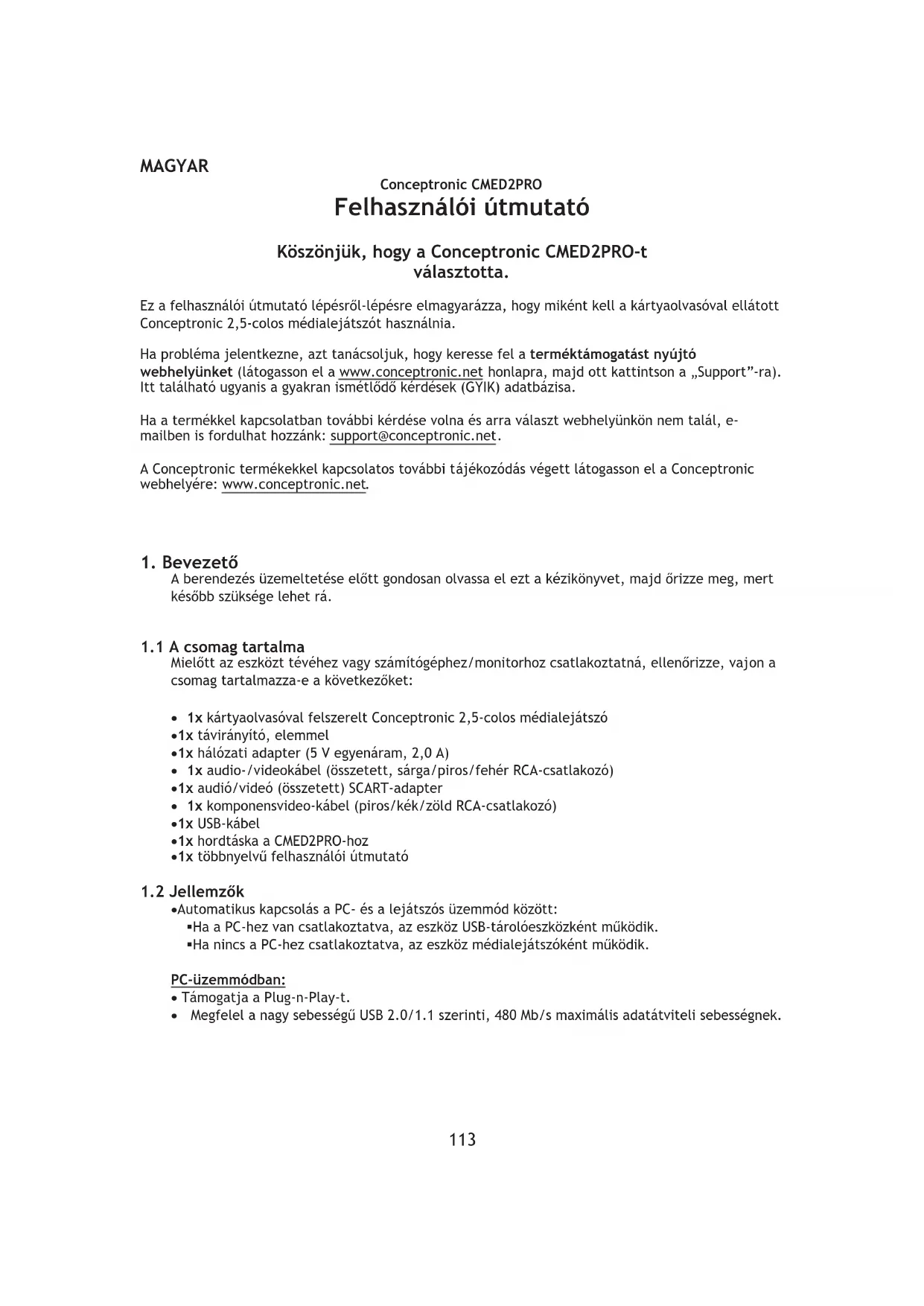 HASZNÁLATI ÚTMUTATÓ CMED2PRO CONCEPTRONIC