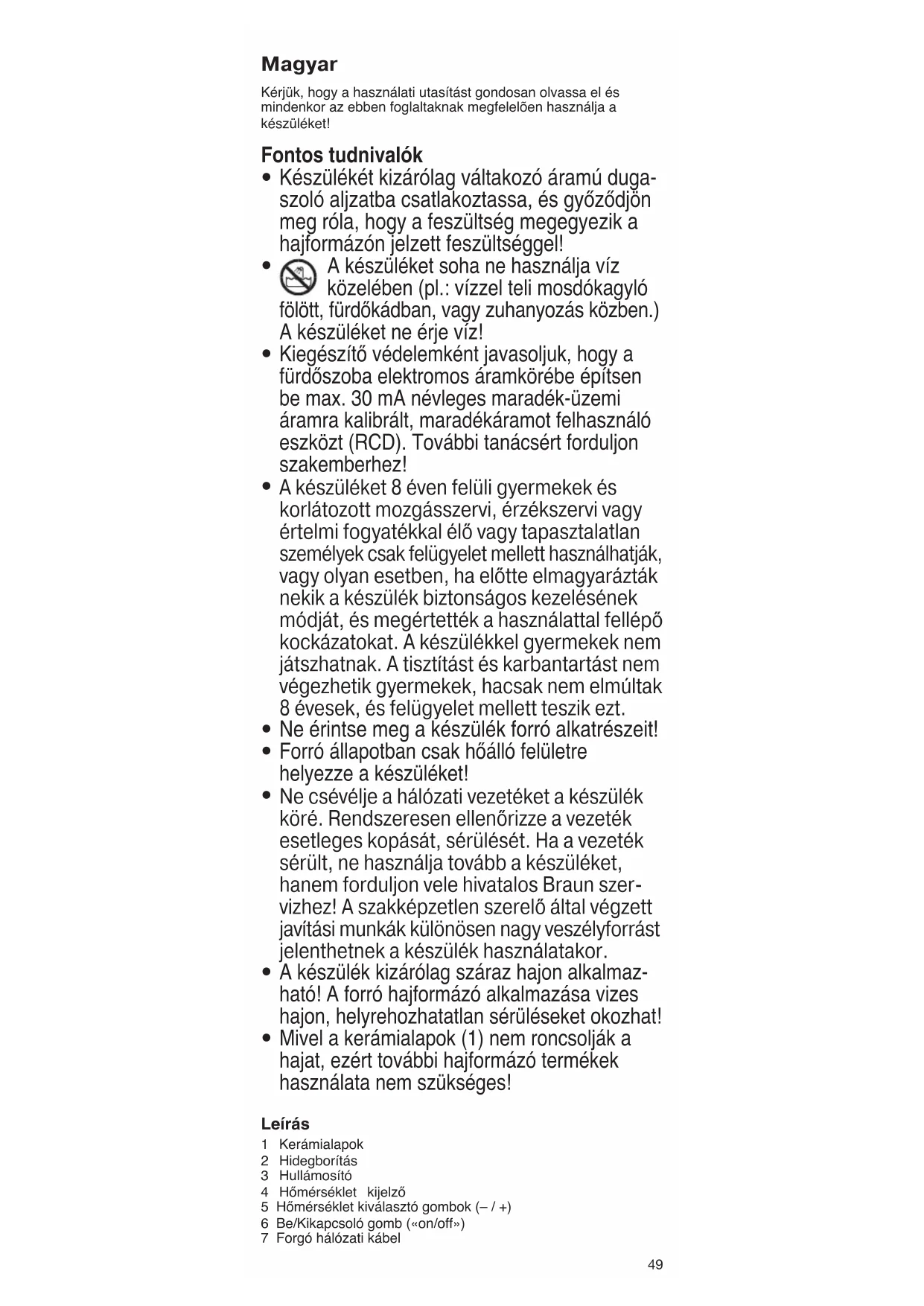 a konnektorból! Vízbe soha ne merítse a hajformázót!
