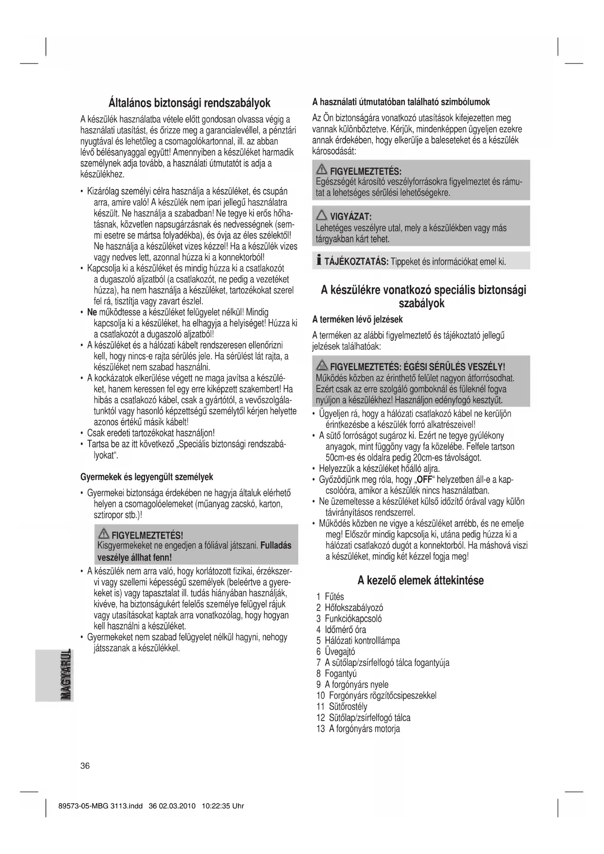 HASZNÁLATI ÚTMUTATÓ MBG 3113 CLATRONIC