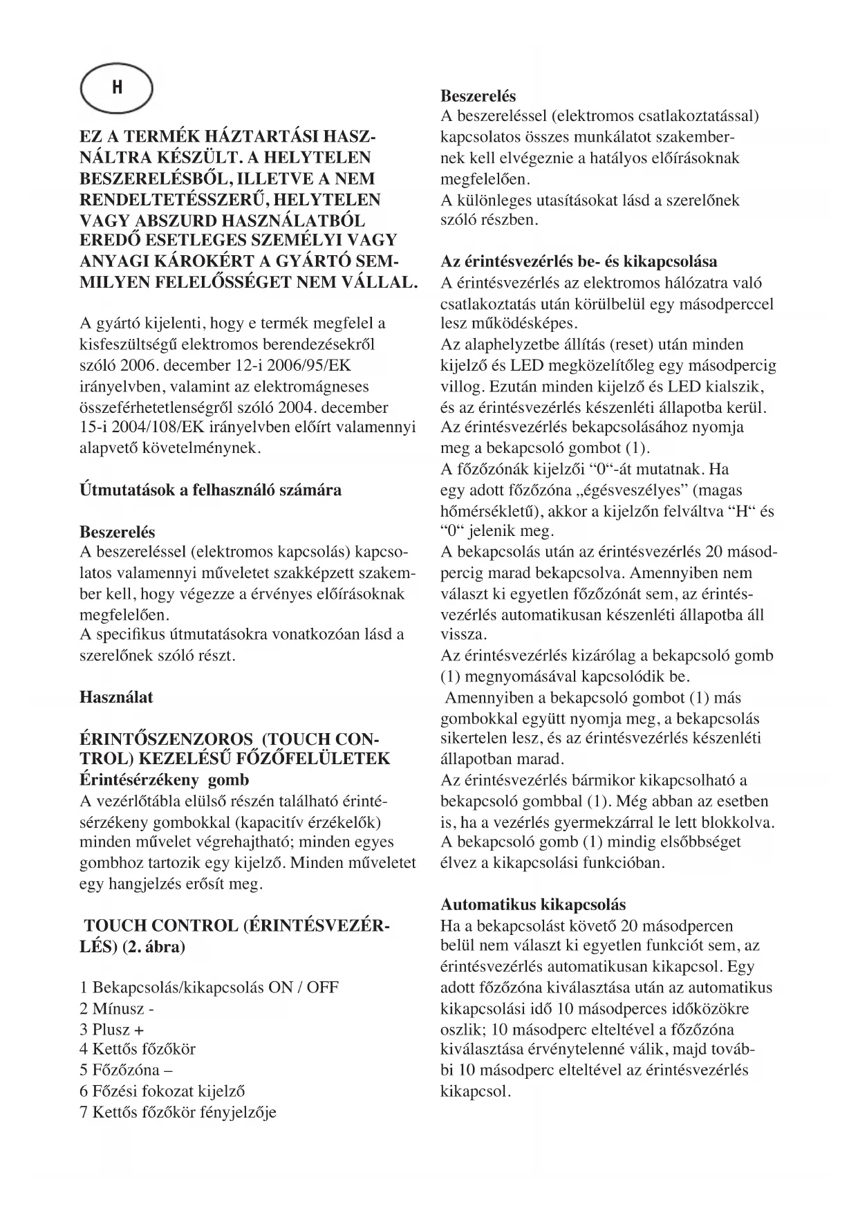 gfelel a főzőlap terhelésének és az érvényes