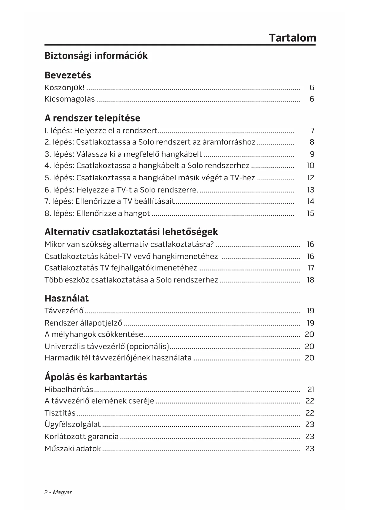 ügyfélszolgálatához. Az ehhez szükséges információkat a Solo TV-hangrendszerhez