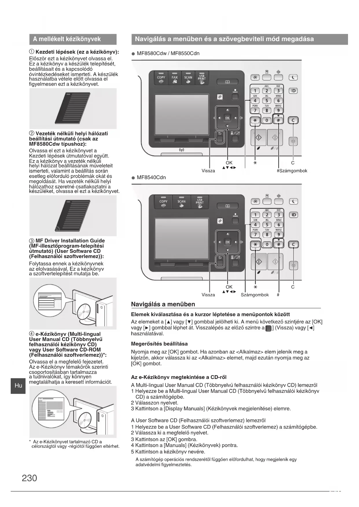 megtalálhatja a keresett információt. * Az e-Kézikönyvet tartalmazó CD a célországtól vagy -régiótól függően eltérhet. Navigálás a menüben és a szövegbeviteli mód megadása