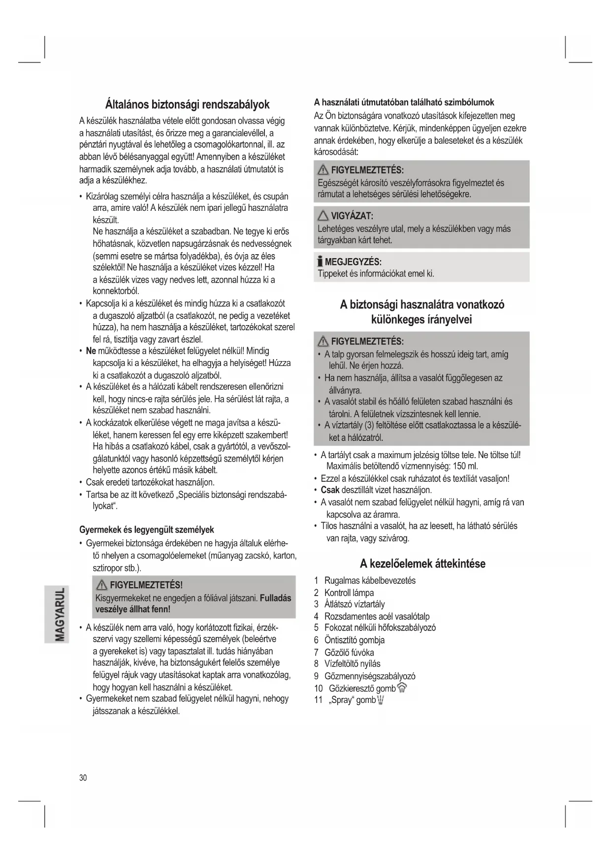 • Tilos használni a vasalót, ha az leesett, ha látható sérülés