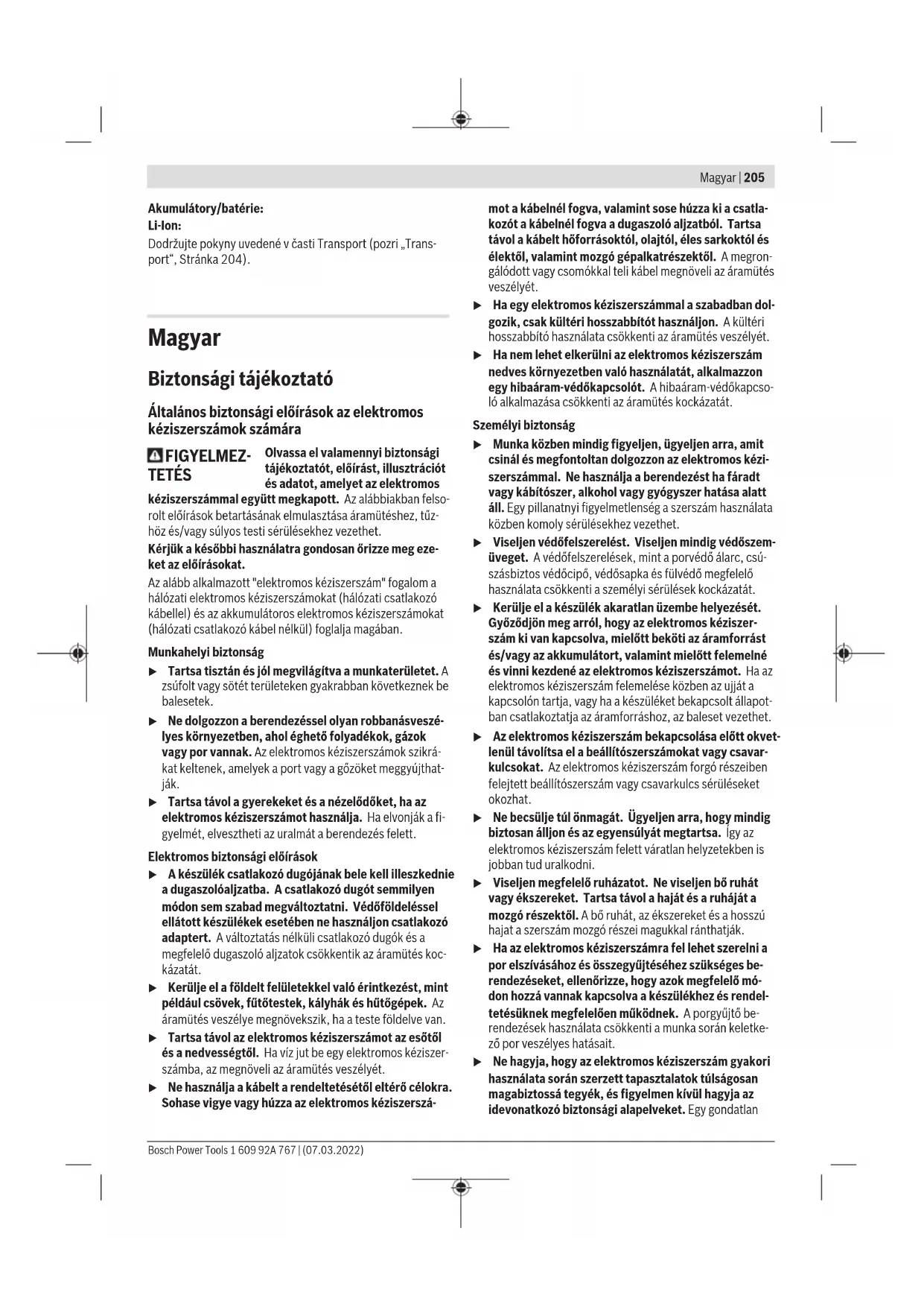 idevonatkozó biztonsági alapelveket. Egy gondatlan Bosch Power Tools 1 609 92A 767 | (07.03.2022)206 | Magyar