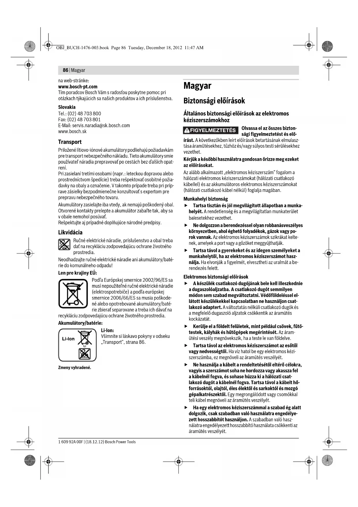 „Transport“, strana 86. Zmeny vyhradené. Magyar