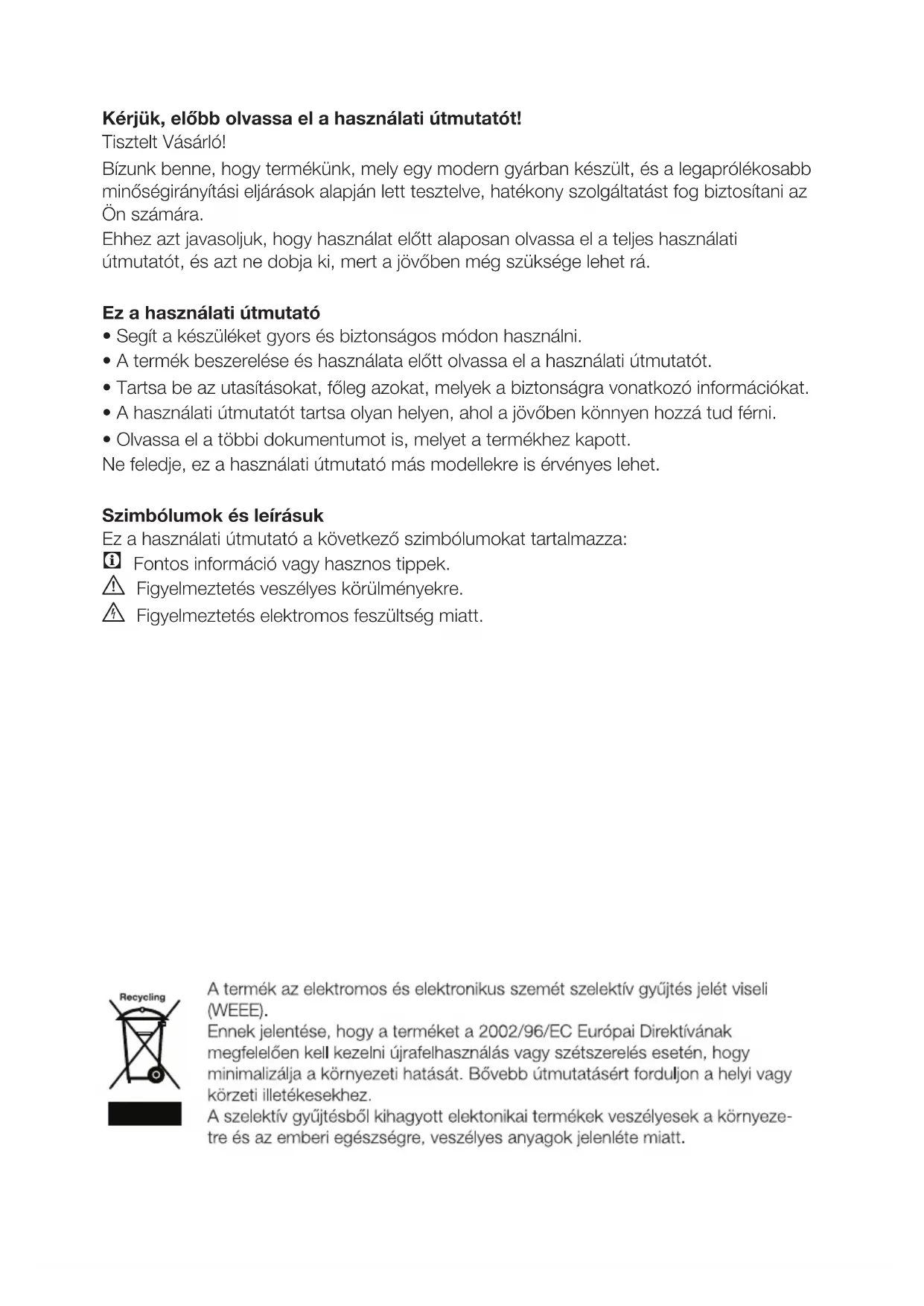 • Tartsa be az utasításokat, főleg azokat, melyek a biztonságra vonatkozó információkat.