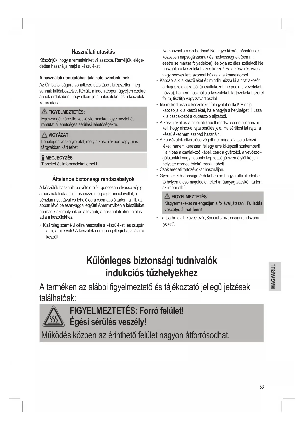 • Forró felület! Az indukciós főzőfelületen csak a főzőedény fenék-