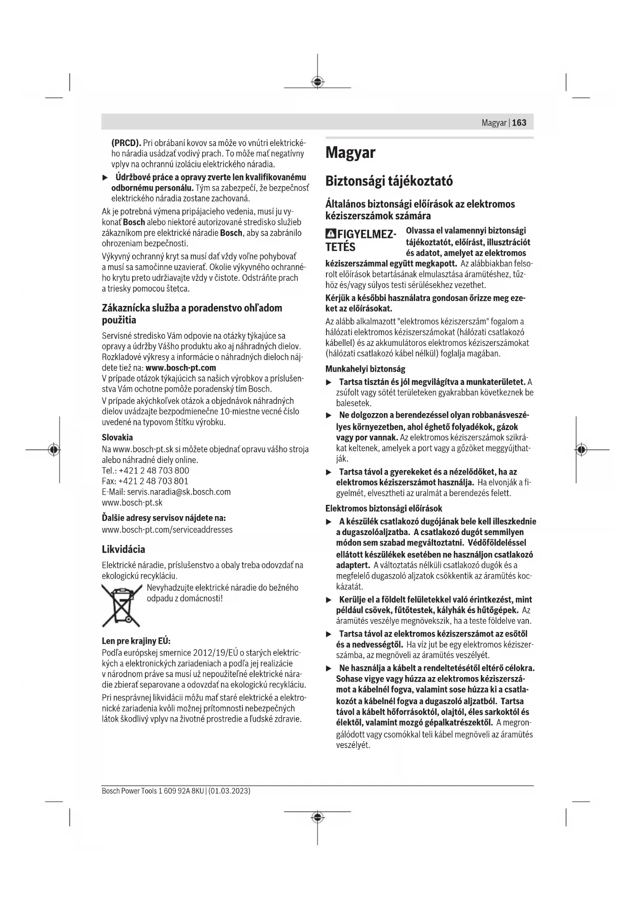 veszélyét. Bosch Power Tools 1 609 92A 8KU | (01.03.2023)164 | Magyar