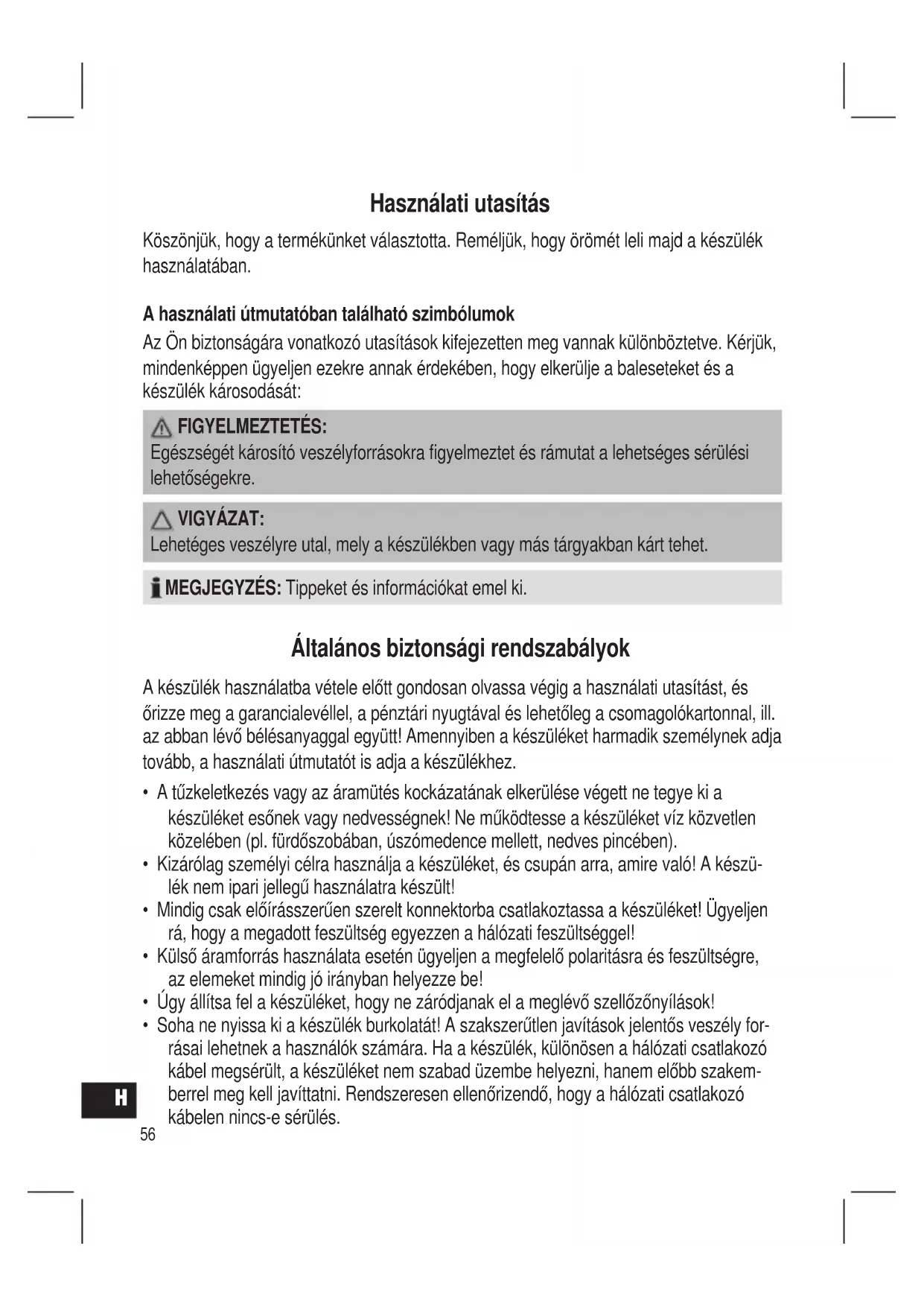 H Használati utasítás