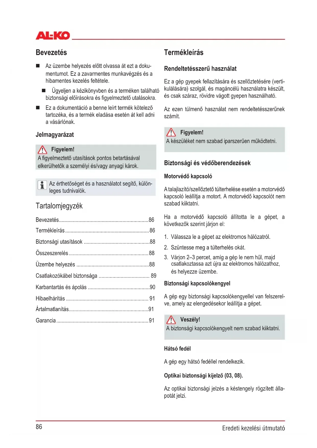 HASZNÁLATI ÚTMUTATÓ Combi Care 38 E AL-KO